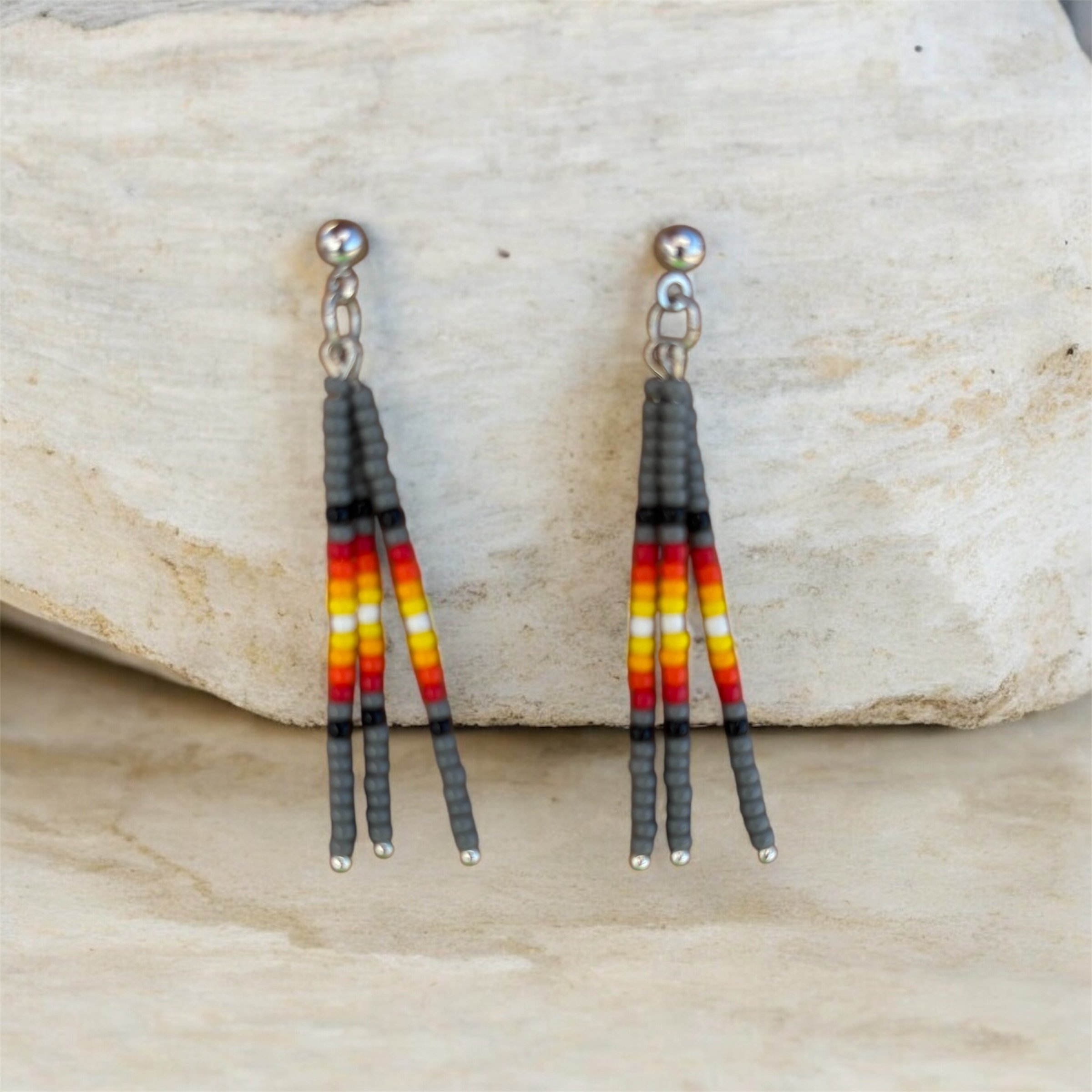 Handcrafted by a Native American artist, these earrings are created in a style inspired by traditional beadwork, celebrating vibrant color, flowing movement, and the timeless artistry found in Indigenous designs. Lightweight yet powerful in presence, they add both elegance and expressive spirit to any look.